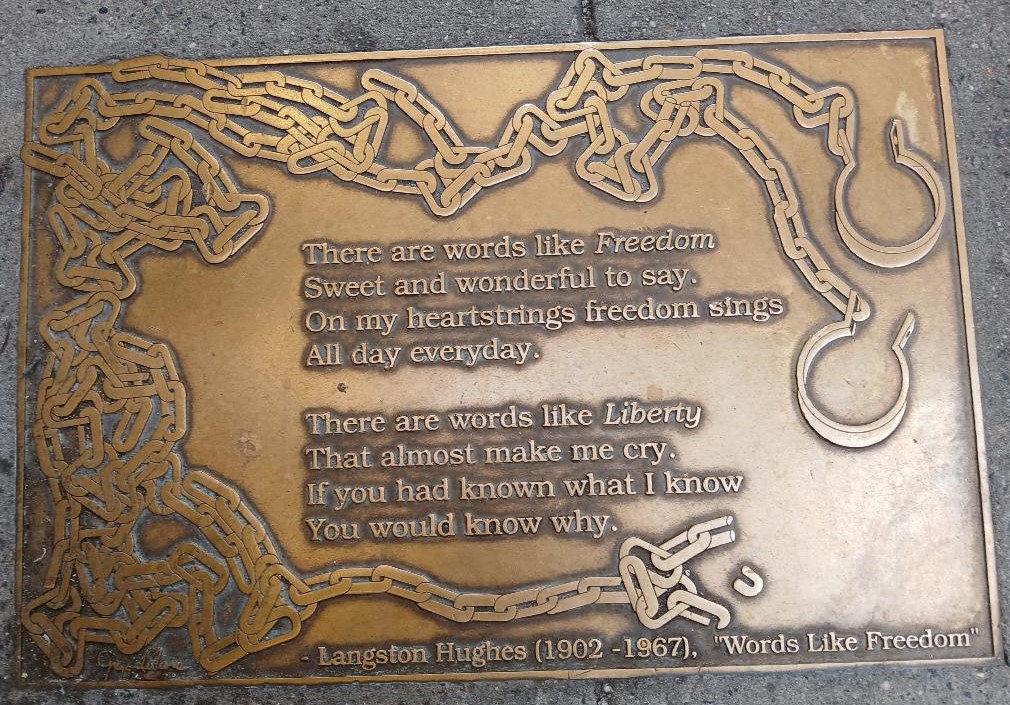 We’ll find out what the scholars made of it later in the week. My own thoughts turned to Doctor King and his view that “America has made progress towards freedom, but measured against the goal the road ahead is still long and hard” (The Nation, 15th March 1965). I also remembered seeing a plaque in the pavement of 41st Street in Manhattan with a poem by Langston Hughes.