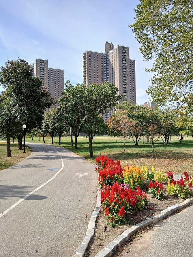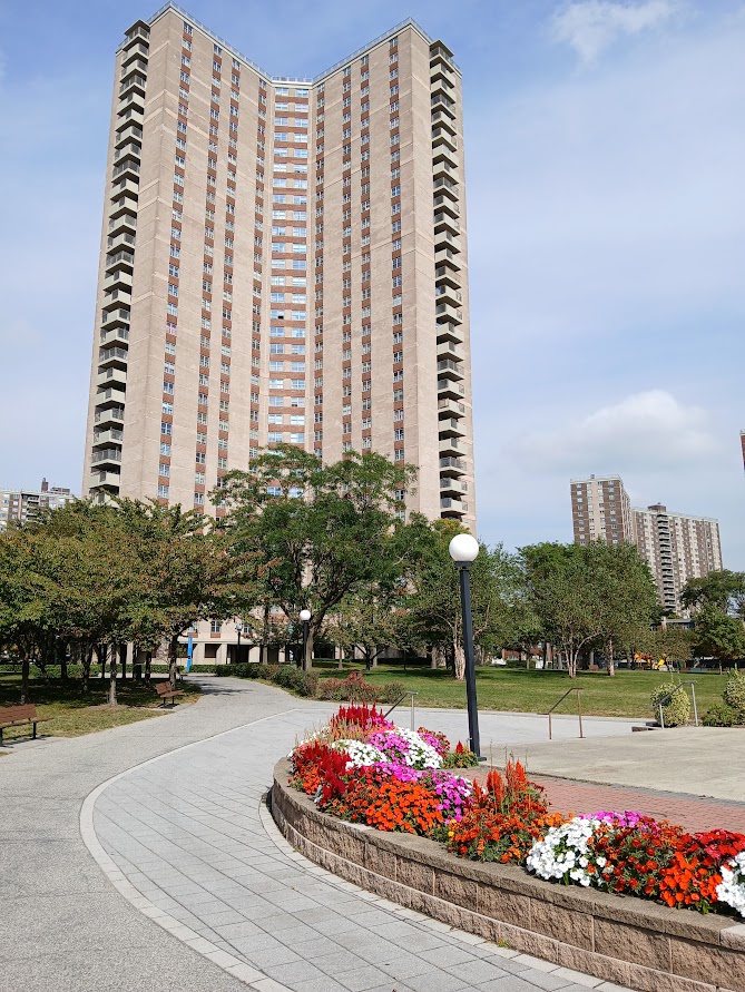 Of course, Co-Op City isn’t utopia. But walking around it brings a sense of a place that works. There’s an air of calm, greatly helped by cars not dominating the environment. The grounds and gardens are cared for and litter almost non-existent. Notice boards advertise numerous, varied community activities. Neighbours sit on benches and chat. It’s ethnically mixed, although most of the Jewish residents who were the majority in the early days, have moved on. As Kazembe rightly says, Co-Op City busts several myths, particularly the one about tower blocks inevitably becoming crime-ridden slums in the sky, especially when lived in by poor people of colour. He describes Co-Op City as “inadvertently anti-racist” because of how it has successfully integrated people from different background, without necessarily meaning to do so.